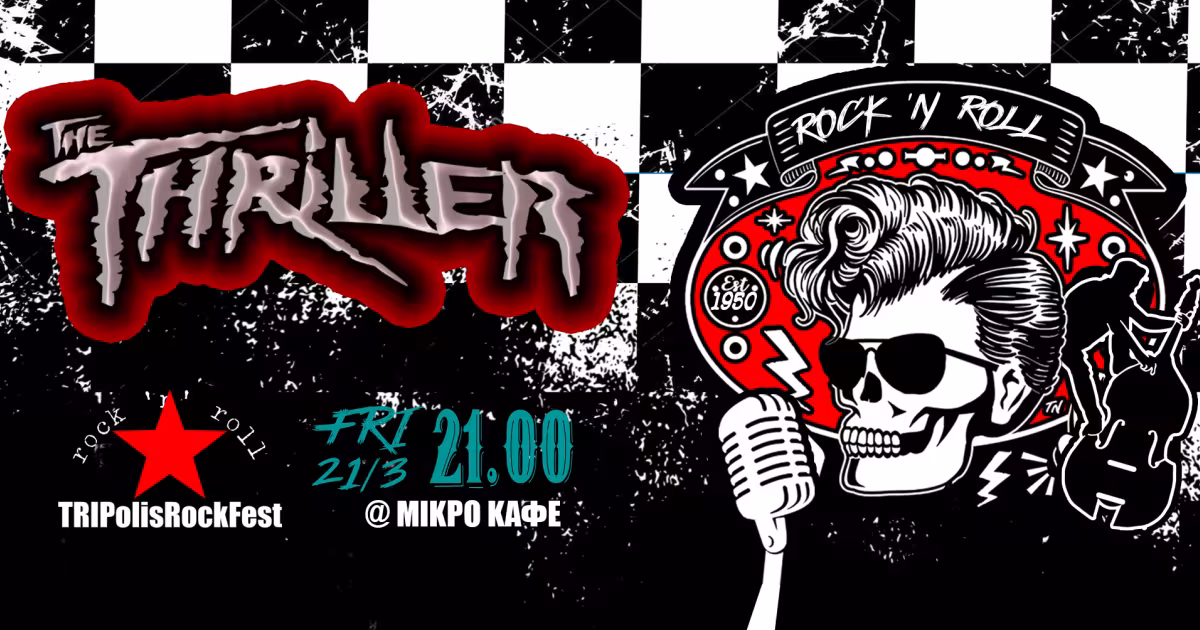 Κοντραμπάσο, κιθάρα, τύμπανα, φράντζες, κοκτέιλ και ανελέητο rock ‘n’ roll, σε μια βραδιά που στη σκηνή θα ανέβουν οι Thriller, μία από τις πιο εκρηκτικές μπάντες του είδους στην Ελλάδα, με ευρωπαϊκές περιοδείες σε Γαλλία και Γερμανία, με εμφανίσεις δίπλα σε κορυφαία σχήματα όπως οι Go Getters (Σουηδία), The Meteors (Αγγλία), Mad Sin (Γερμανία), αλλά και με τον 2ο δίσκο τους έτοιμο να κυκλοφορήσει.
